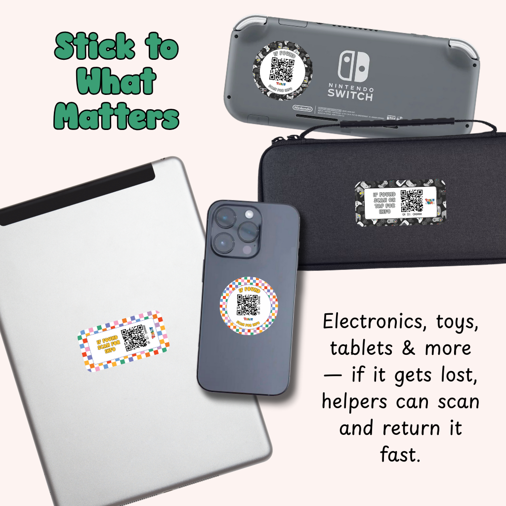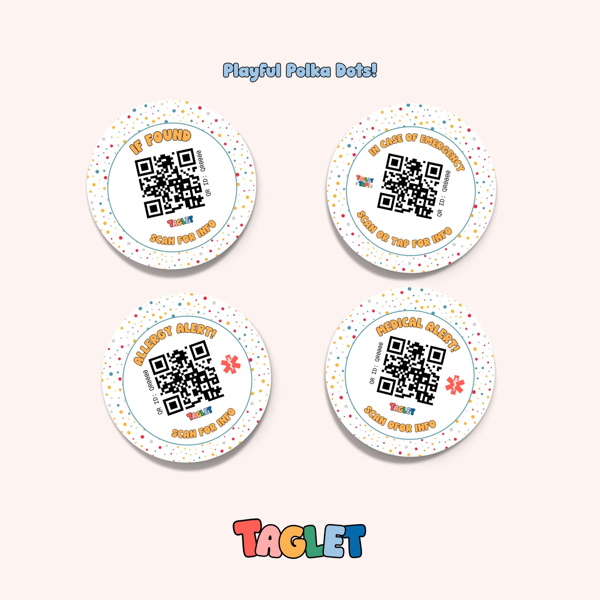 Our 2-inch Round Taglet Stickers are the most versatile way to add an extra layer of safety on the go. Each sticker features a scannable QR code that links to a private Safety Page after activation. No personal info is printed on the sticker itself—just sleek, secure protection that sticks where you need it most.